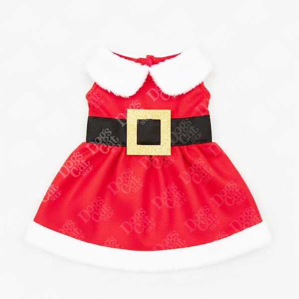 El diseño incorpora un cinturón negro con una hebilla dorada brillante, inspirado en el traje tradicional de Santa Claus, dándole un look festivo y adorable. Su tela es suave, liviana y cómoda, pensada para que tu perrito o gatito pueda moverse con total libertad durante fotos, reuniones y eventos navideños.